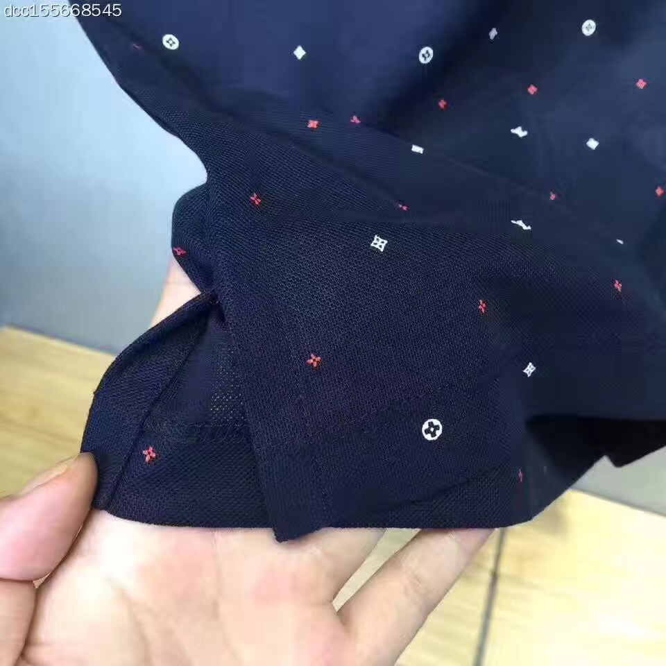 驴牌 LV 路易威登 男士原单翻领短袖POLO衫 专柜最新系列 新一季极具代表性的全身LOGO标志元素配以条纹设计 诠释出充满活力的年轻都市感 简单的设计感与品质感浑然天成 高端珠地棉面料 极佳触感 内敛轻熟的配色 通体展现出高档精致大气之格调 无论商务与休闲都可完美驾驭!实物拍摄 藏青 size:M-3XL(欧版,最大可穿200斤左右)货号:-7015