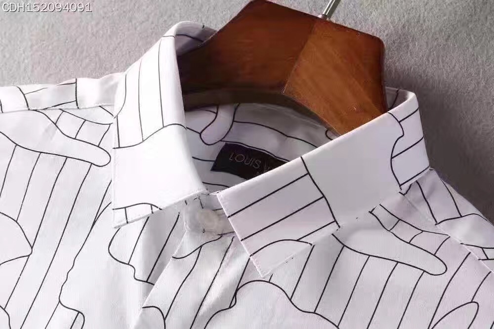 【17ss香港专柜同步发售💥💥高级精选原单系列】 LV~专柜款短袖衬衫时尚商务休闲衬衣专柜同步有售,原单正品品质,采用进口纯棉印花 原版版型 17年最新版本,手感舒适 柔软有型 可专柜对比,仔细品质,做工精细完美,防伪最新版商标吊牌,商务休闲男士必备,大气时尚。颜色:白色 黑色尺码:M- XXL