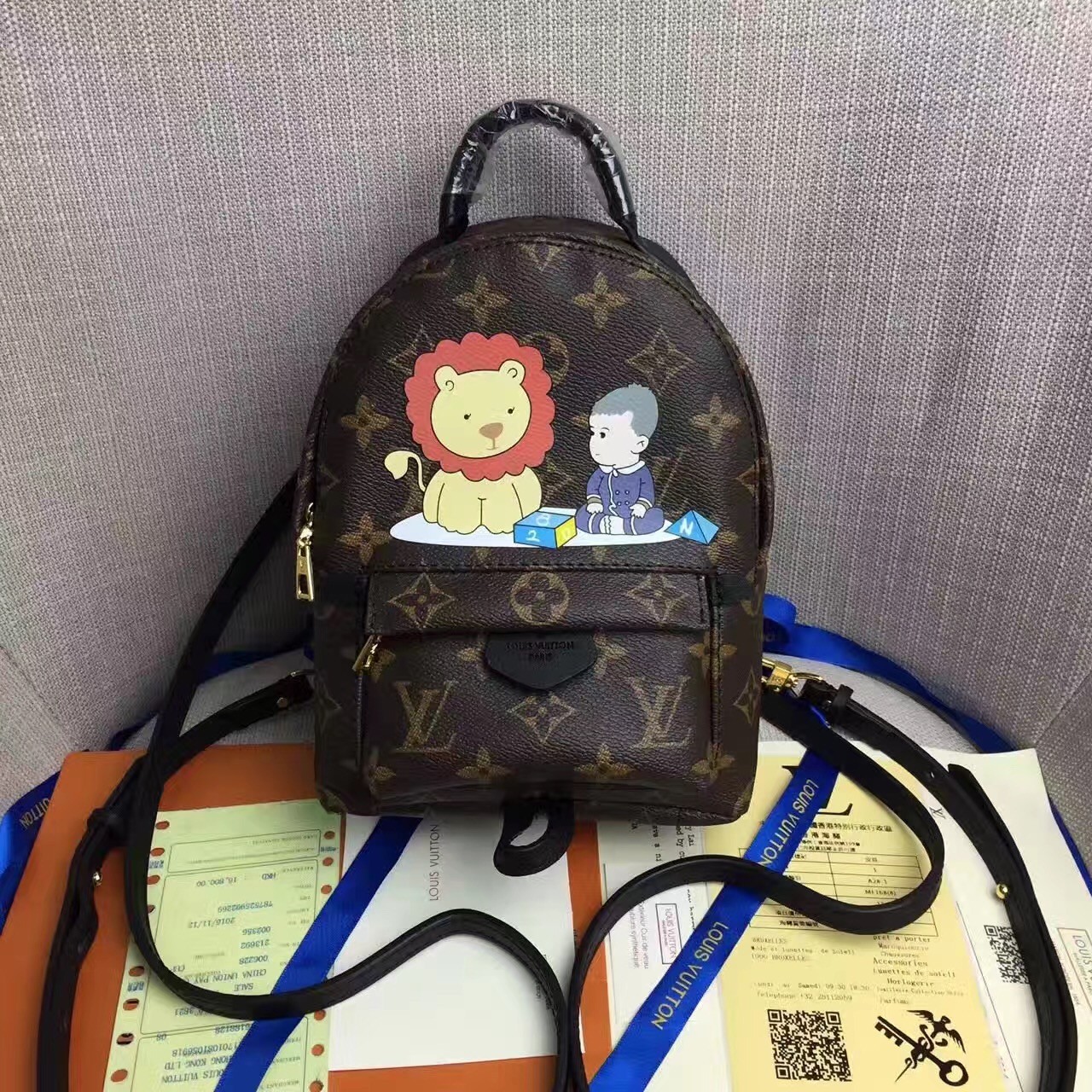 【正品精工复刻】独家实拍!秋冬新款圣诞款卡通狮子双肩背包 Louis Vuitton2016年早春系列!Nicolas Ghesquiete赋予此款背包惊人的风格变化 将一件朴素的日用品变为一款时