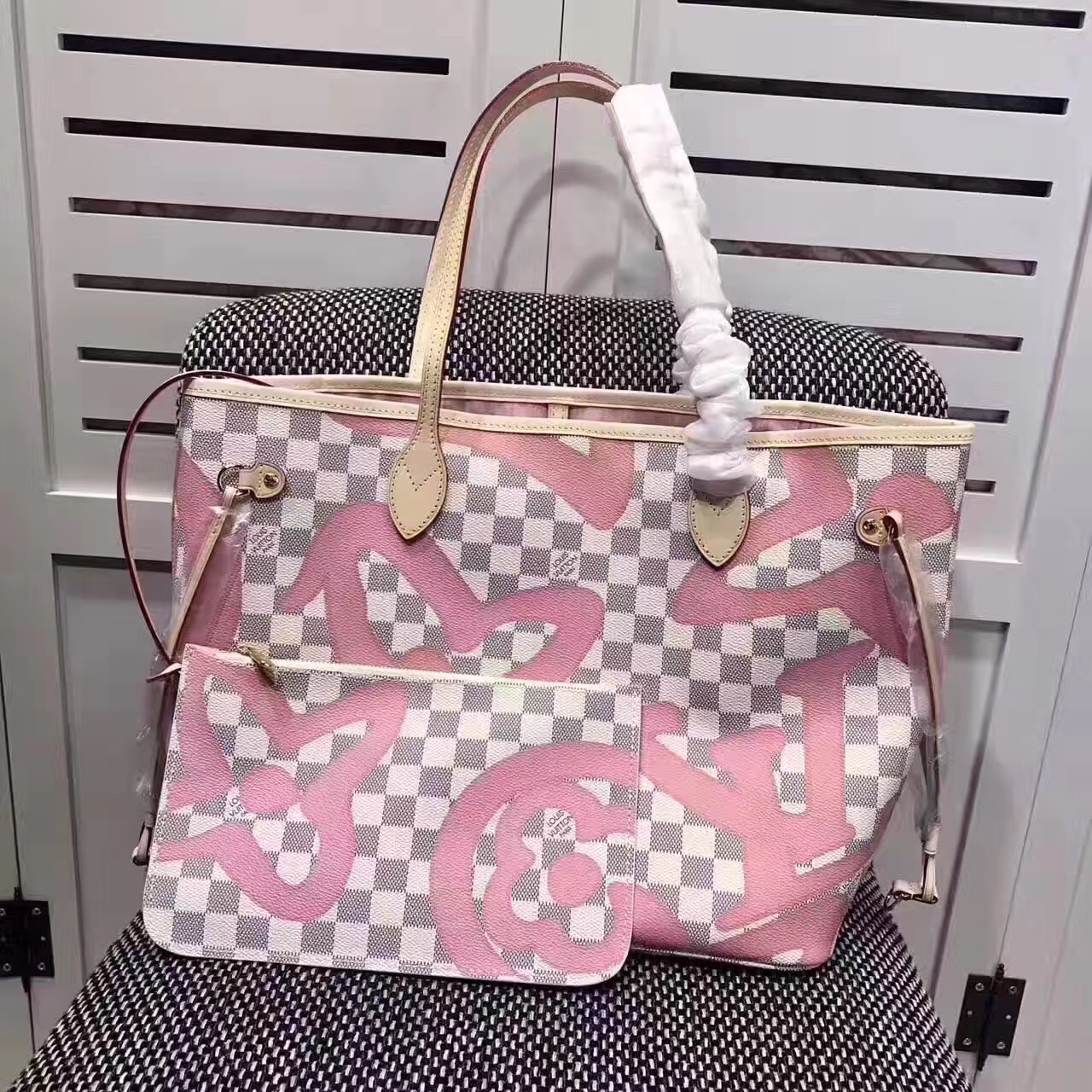 专柜对版五金2017年美洲杯系列推出尺寸更大、更为醒目的升级版Damier格纹,尺寸:30-40-20CM